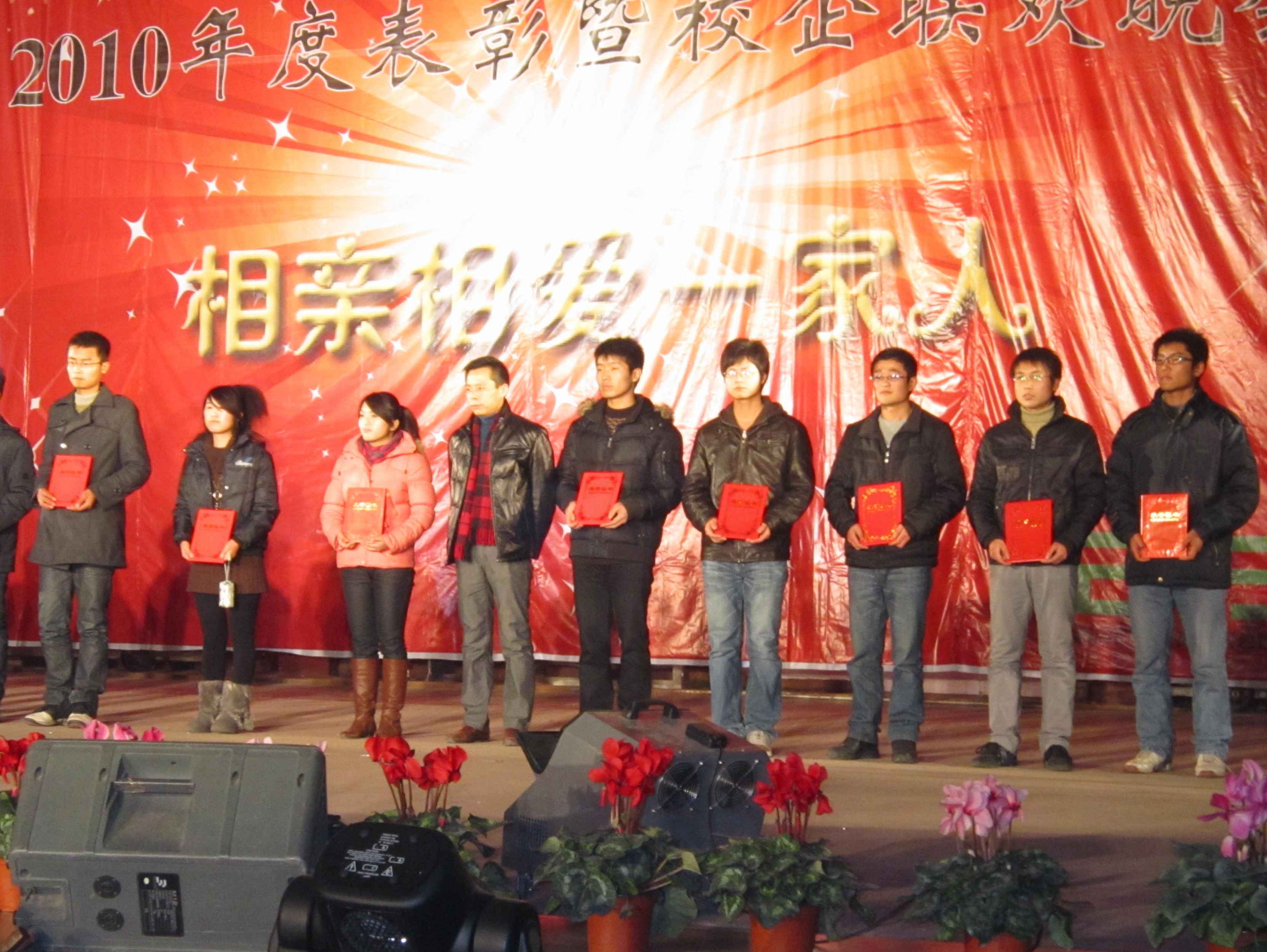 在晚会进行过程当中,穿插了365英国上市公司2010年度表彰。党总支书记梁惠和经理孙亚峰对一年来365英国上市公司举办的两期职业技能竞赛一等奖获得者进行了表彰,徐州天力建筑装饰有限公司总经理李宝珠、江苏水立方建筑装饰设计院副经理胡艳琴和上海睿合广告传播有限公司徐州分公司总经理田建龙分别为企业奖学金获得者颁发荣誉证书,徐州清大吉博力建材有限公司总经理张吉鹏为“清大吉博力”特色班的35位同学颁发了企业助学金。