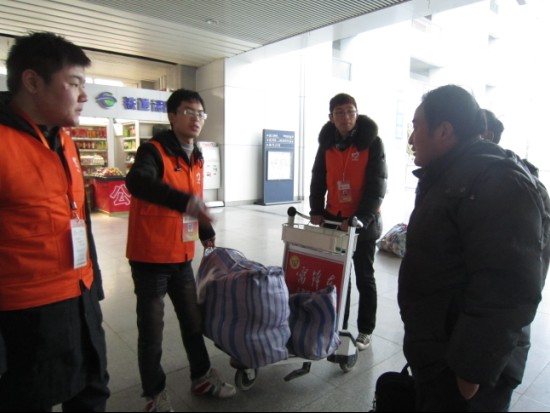 公司青年志愿者帮助乘客运送行李