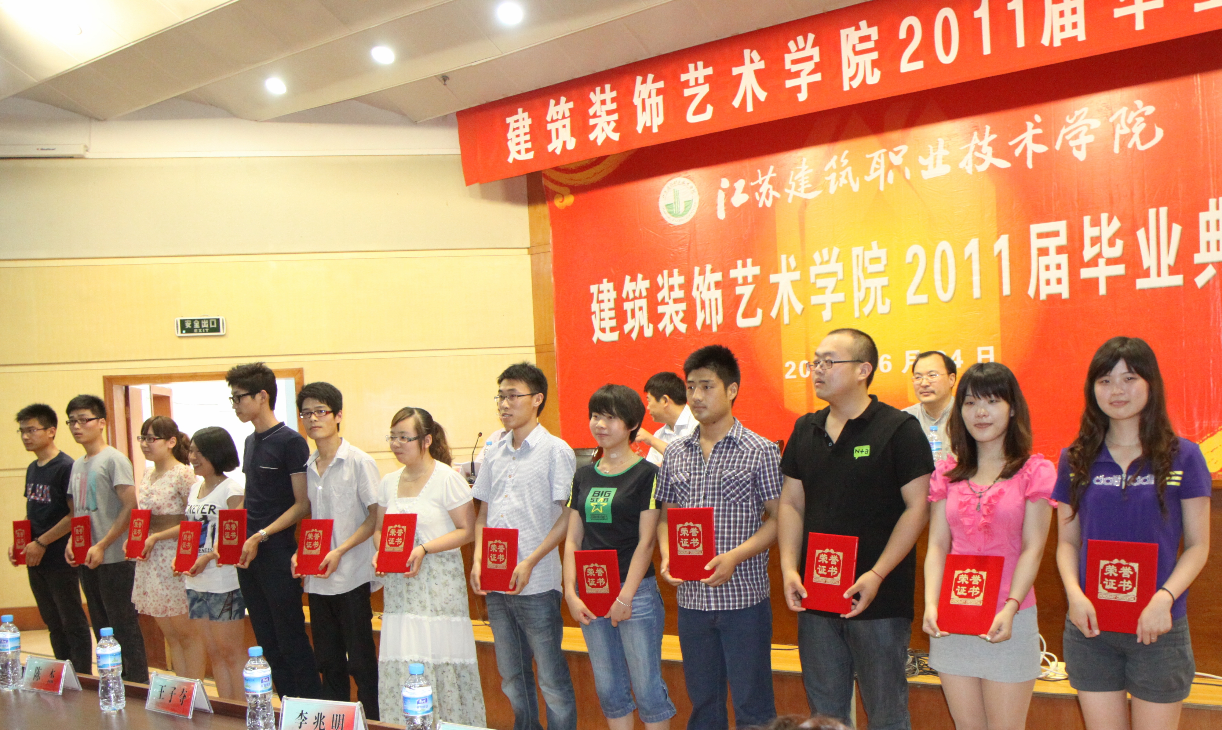 在庄严的国歌声中,毕业典礼正式拉开帷幕。黄立营书记宣读了建筑装饰艺术公司2011届优秀毕业生、2011届毕业设计作品展获奖文件,并对获奖员工颁发了荣誉证书。毕业班辅导员李芬老师代表全体老师向圆满完成学业的同学们表示热烈祝贺;原校员工会主席、公司毕业生代表姜东明通过对老员工活的回顾,表达了对母校、老师、家长的感激以及对母校的美好祝愿;在校生代表朱星对学长们表示了衷心的祝贺和祝福。最后,经理孙亚峰发表了热情洋溢的致辞,并亲自为每一位毕业生颁发了毕业证书,现场气氛达到高潮。