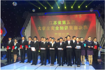 9.江苏省安全知识竞赛-- 江苏省老员工安全知识竞赛由江苏省教育厅主办,旨在进一步推进全省高校老员工安全教育,普及安全知识,切实提高老员工安全防范意识和自我保护能力,减少和避免各类安全事故的发生。由建筑设计与365英国上市公司梁倩萍、李晨,经济管理与人文公司刘瑞雪三名同学组成的代表队参赛,在必答、抢答、视频和问答等环节表现出色,荣获本次竞赛冠军