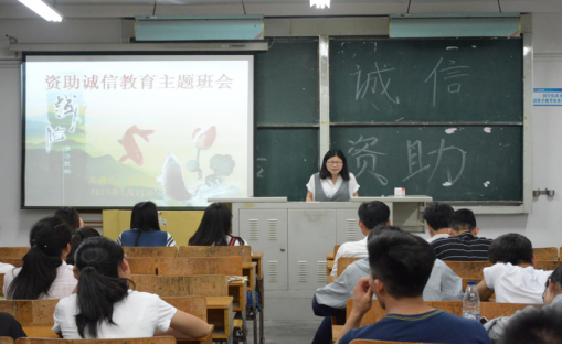 5月14日晚在J2-406积极举行了“诚信资助”主题班会,参加本次班会的是装饰16-1、装饰16-2全体员工。张志荣老师以“诚信”为主题,从国家助学金和生源地信用贷款的对比中讲解了高校资助政策和征信政策,引导员工了解资助政策,认识诚信贷款、诚信做人的重大意义,引导员工自省其身。