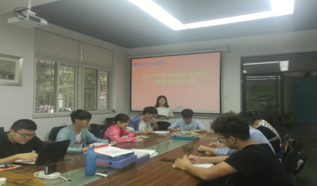 2017年5月4日晚在设计公司办公室召开员工助学贷款续贷声明会议,张志荣老师向15、16级所有办理助学贷款续贷的66名同学一一讲解续贷申请的流程及确认,完整无误填好资助信息系统材料。