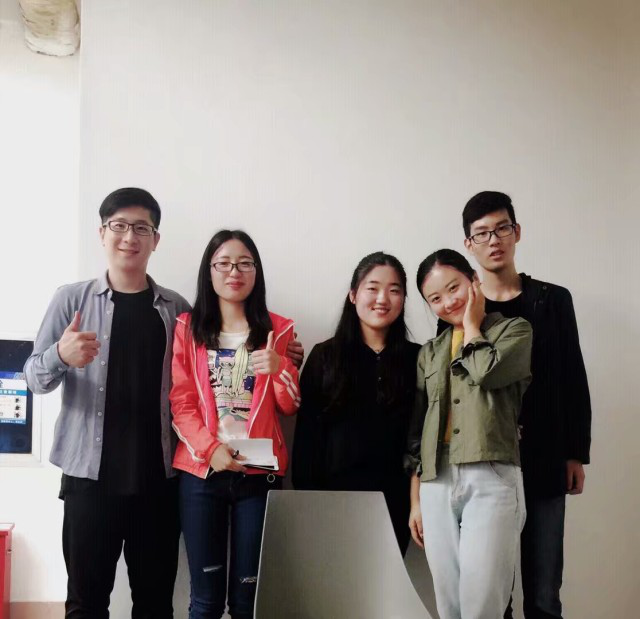 左至右依次:室设15-2 李欣 、室设15-2刘嘉政、室设16-2 潘孝玉、室设15-2 黄美娜、装饰16-6 盛宇强