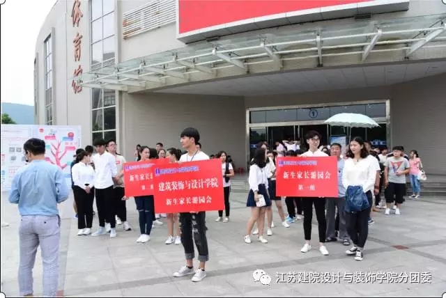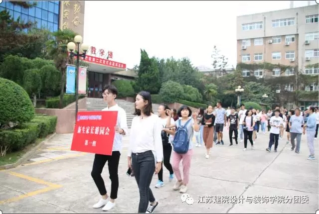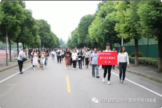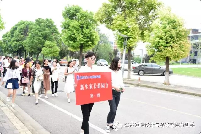 下午两点,院礼仪队干事分为 两队,领队手持活动牌在前面领路,讲解员和其他干事分散在队伍中间和两边,不时为新生和新生家长介绍公司情况,为他们解答疑惑。50多名新生家长和几十名新生不顾旅途劳累,兴致勃勃地参观校区。