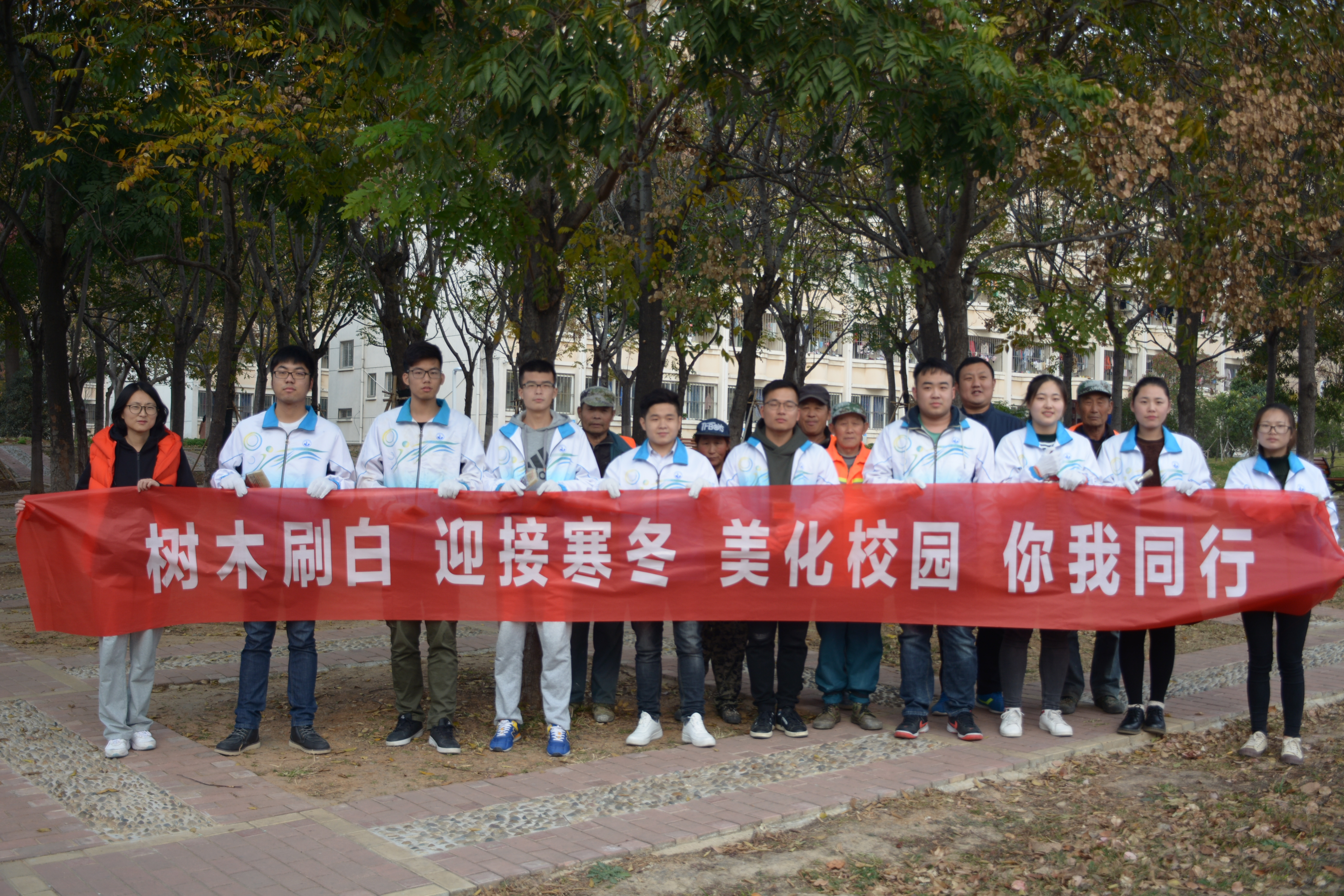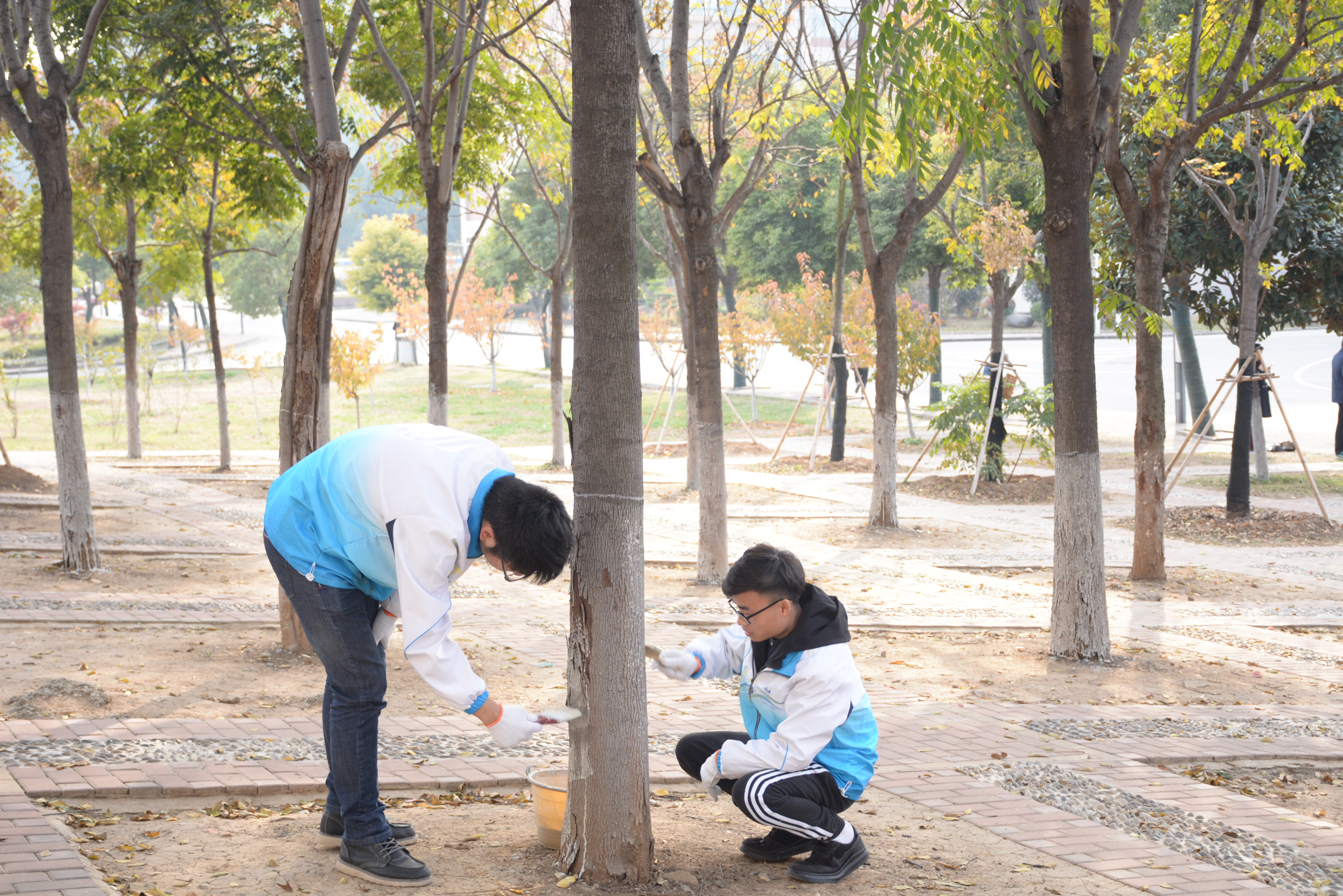 近日,天气转冷,气温下降,为加强园林绿化树木的冬季管理,增强树木抗寒防寒防冻防虫能力,确保树木安全过冬,公司组织养护工人对校内的树木进行刷白,作为园林专业员工当然要首当其冲,参与到美化我大建院校园的活动中来。