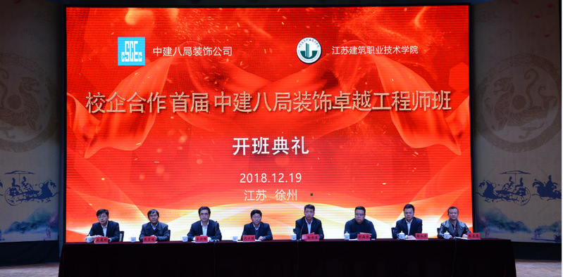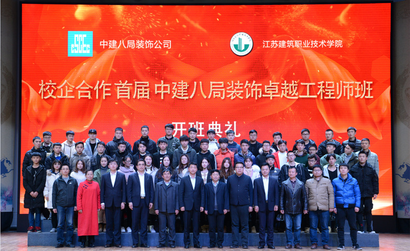 仪式上,经理沈士德代表公司致欢迎辞。沈经理指出,校企合作是公司创新发展的必由之路,希望校企双方在更高的起点实现共同发展、在更宽的领域实现共建共享、在更深的层次进行合作交流,同时也希望卓越工程师班的同学能珍惜这个来之不易的学习机会,不断提高自身的综合素养。中建八局装饰公司党委书记、董事长孙士东介绍了企业的基本情况,并希望同学们在企业班学习过程中,多学习、多思考、多感悟,为将来服务企业发展练好本领。中建八局装饰公司人事部副经理王晨羽详细介绍了培训计划,学员代表做了表态发言。