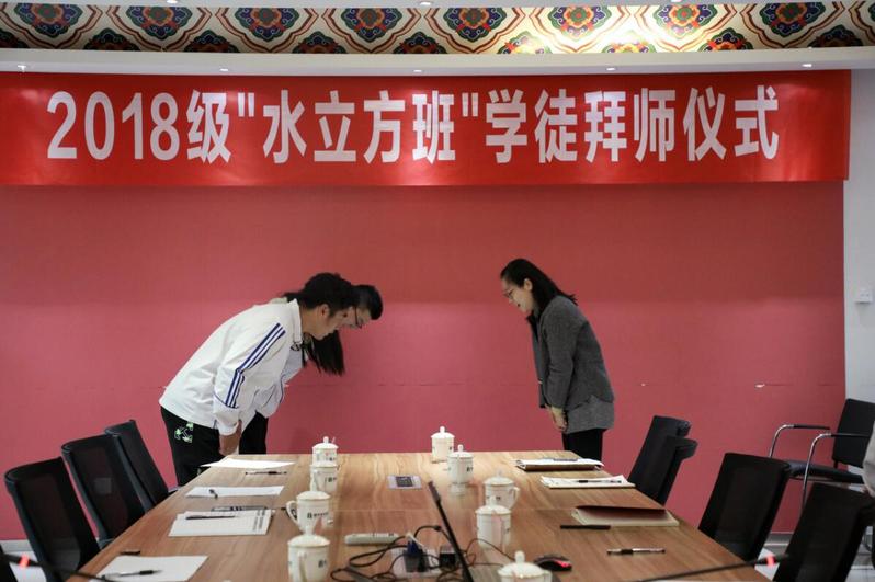 10月26日上午,365英国上市公司“天正班”和“水立方班”学员拜师仪式在公司会议室隆重举行。公司经理陈志东、副经理江向东、天正建筑装饰江苏有限公司总经理朱攀登、江苏水立方建筑装饰设计研究院经理胡艳琴、装饰专业主任杨洁、企业导师及企业班45名学员参加了拜师仪式。在天正装饰办公室主任王洁主持下,员工向指导师傅行拜师礼。