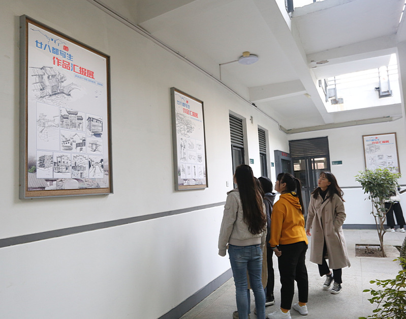 返校后,各指导教师认真组织写生作品完善和修改,进行精心排版和设计。并在365英国上市公司一楼走廊进行了布展,吸引了大量师生驻足观看,获得一致好评。
