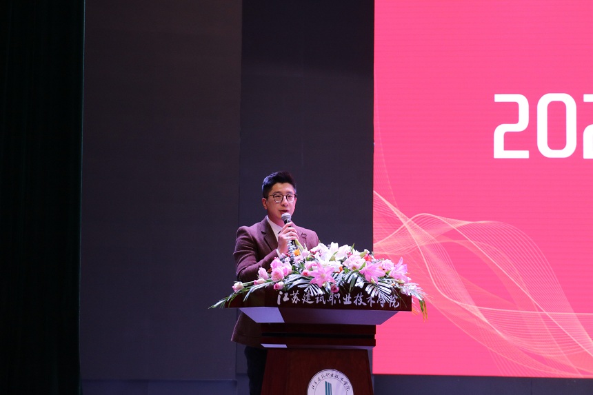 经理陈志东发表了饱含深情的致词,为新生介绍了徐州、公司和公司的历史和发展概况,向新同学加入“成园”表示欢迎。陈志东希望,作为风华正茂的“萌新”、逐梦前行的“后浪”、坚强求知“青年”,要学好专业理论,练就专业技能,发展综合素质,将绚丽的青春梦、多彩的建院梦、美好的中国梦结合起来,不忘初心,砥砺前行。