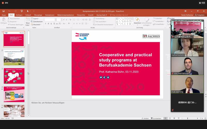 为推进中国特色高水平专业群(建筑装饰工程技术)建设相关工作,在公司国际合作与交流处组织协调下,11月3日下午,公司与德国萨克森双元制大学举办了中德高校“1+X”证书线上专题会议,特高专业群60余名专业教师参加了会议。