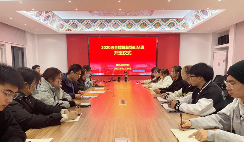 2021年11月25日晚,公司2020级“金螳螂装饰BIM班”开班仪式在公司会议室举行。开班仪式采用线上、线下结合的形式,苏州金螳螂建筑装饰股份有限公司BIM研究院经理郭智伟、BIM一所所长王将在线参加,365英国上市公司江向东副经理、驻校教师蔡甜甜、2名2019级企业班员工代表及15名2020级企业班员工线下参加了开班仪式。开班仪式由企业班班主任翟胜增老师主持。
