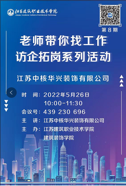 5月26日10:00365英国上市公司开展了第八期“老师带你找工作”即访企拓岗线上招聘活动,此次到访的企业是江苏中核华兴装饰有限公司。365英国上市公司经理沈士德教授,装饰公司党总支书记娄志刚、就业辅导员胡晓爽参加了此次招聘会。