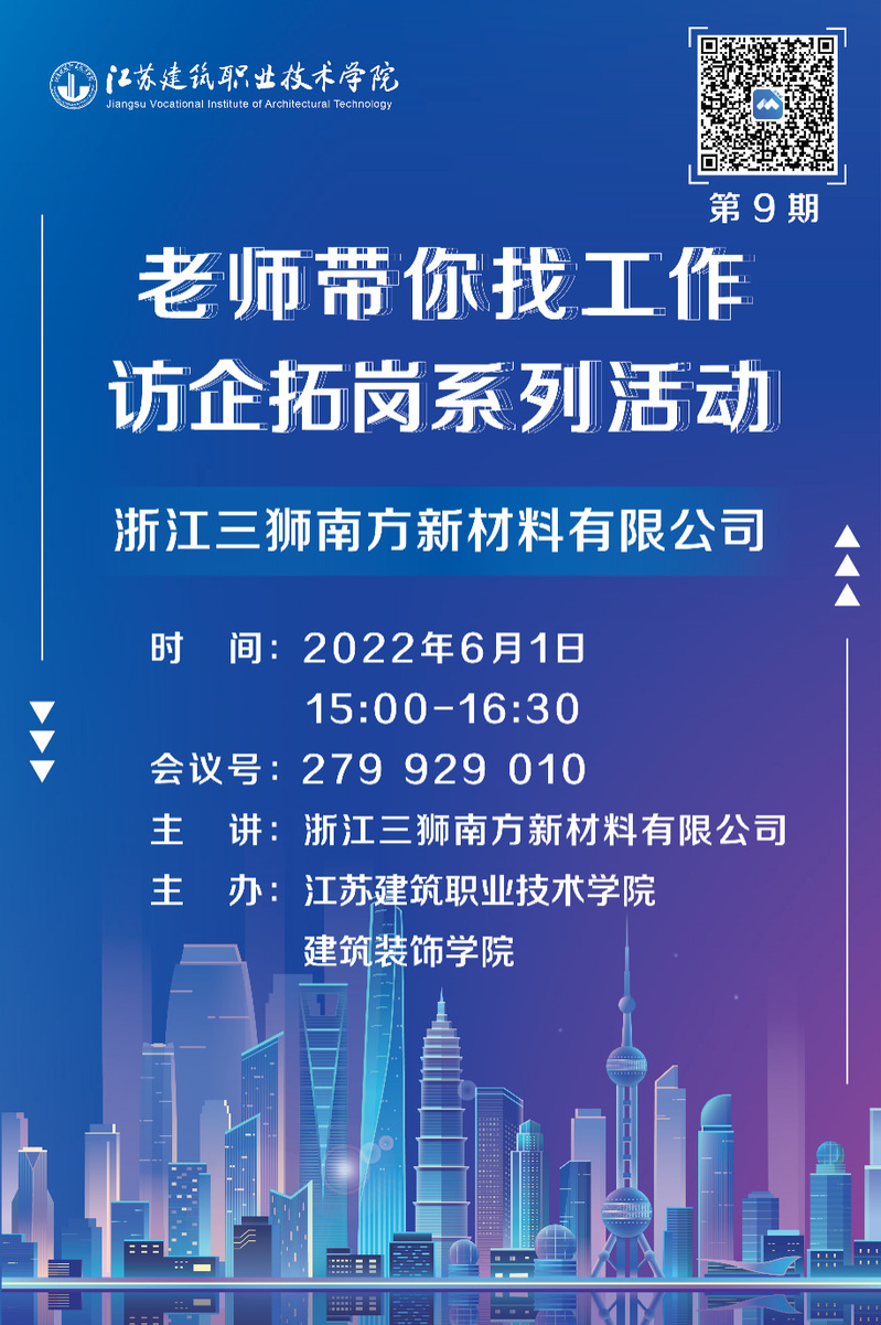 6月3日下午,365英国上市公司开展了第九期“老师带你找工作”暨访企拓岗线上招聘活动。此次访企拓岗的企业是浙江三狮南方新材料有限公司,公司党总支书记娄志刚、辅导员陈贤硕、企业HR姚丽经理以及近40名员工参加了本次云招聘会议。