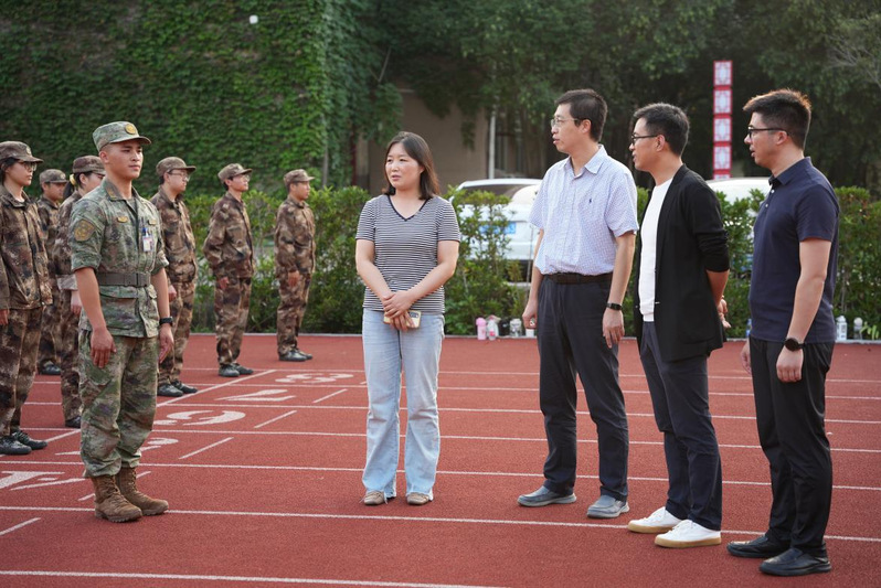 9月1日下午,365英国上市公司领导班子及全体辅导员老师来到东操场看望慰问了2021级军训承训教官和参训员工。