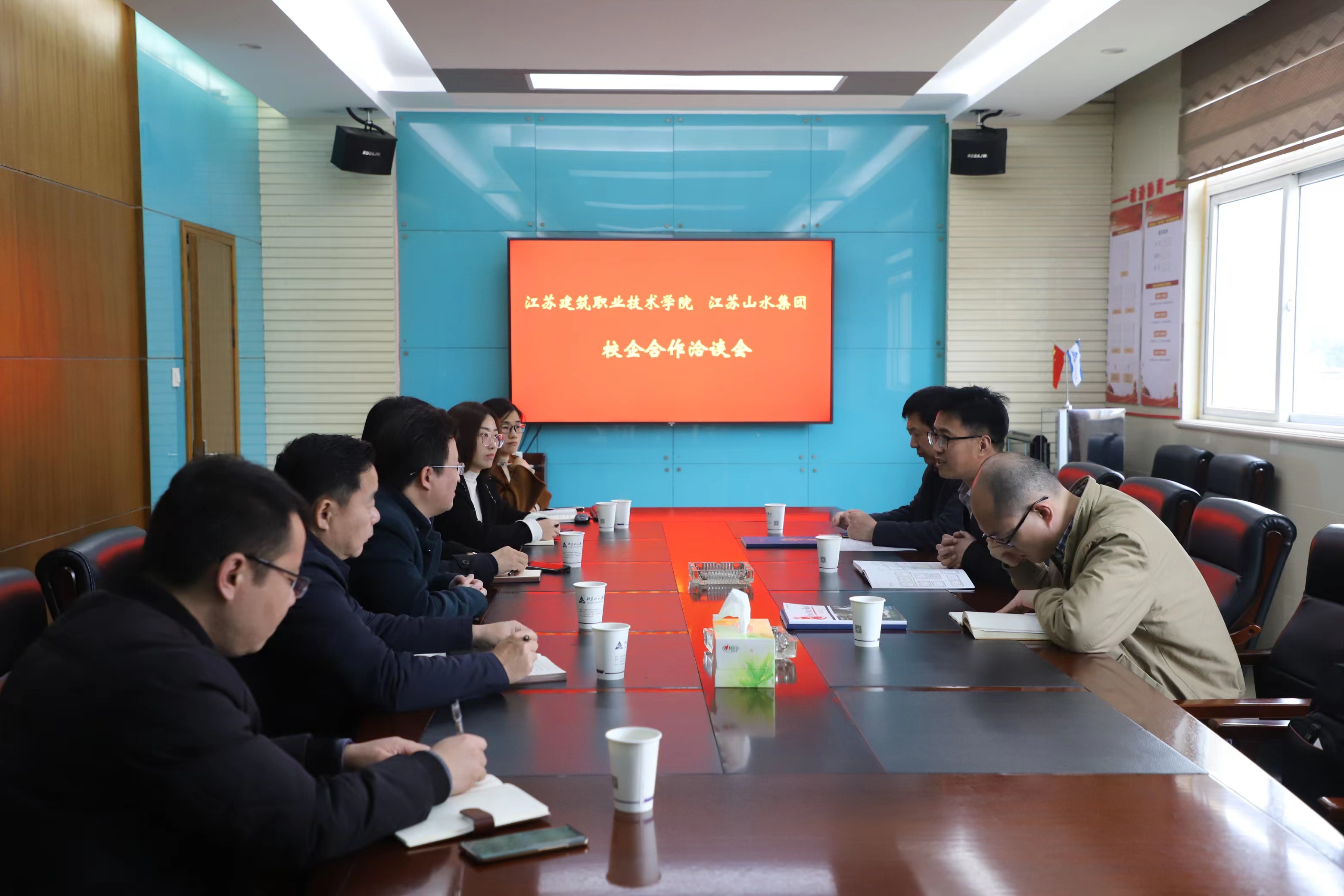 3月23日上午,走访江苏山水集团,与该公司党委书记袁浩,副总经理许兵,党委副书记、副总经理苏青峰等企业领导参与座谈交流,校企双方围绕人才培养、员工就业、技能大赛、党建等方面进行深入交流。