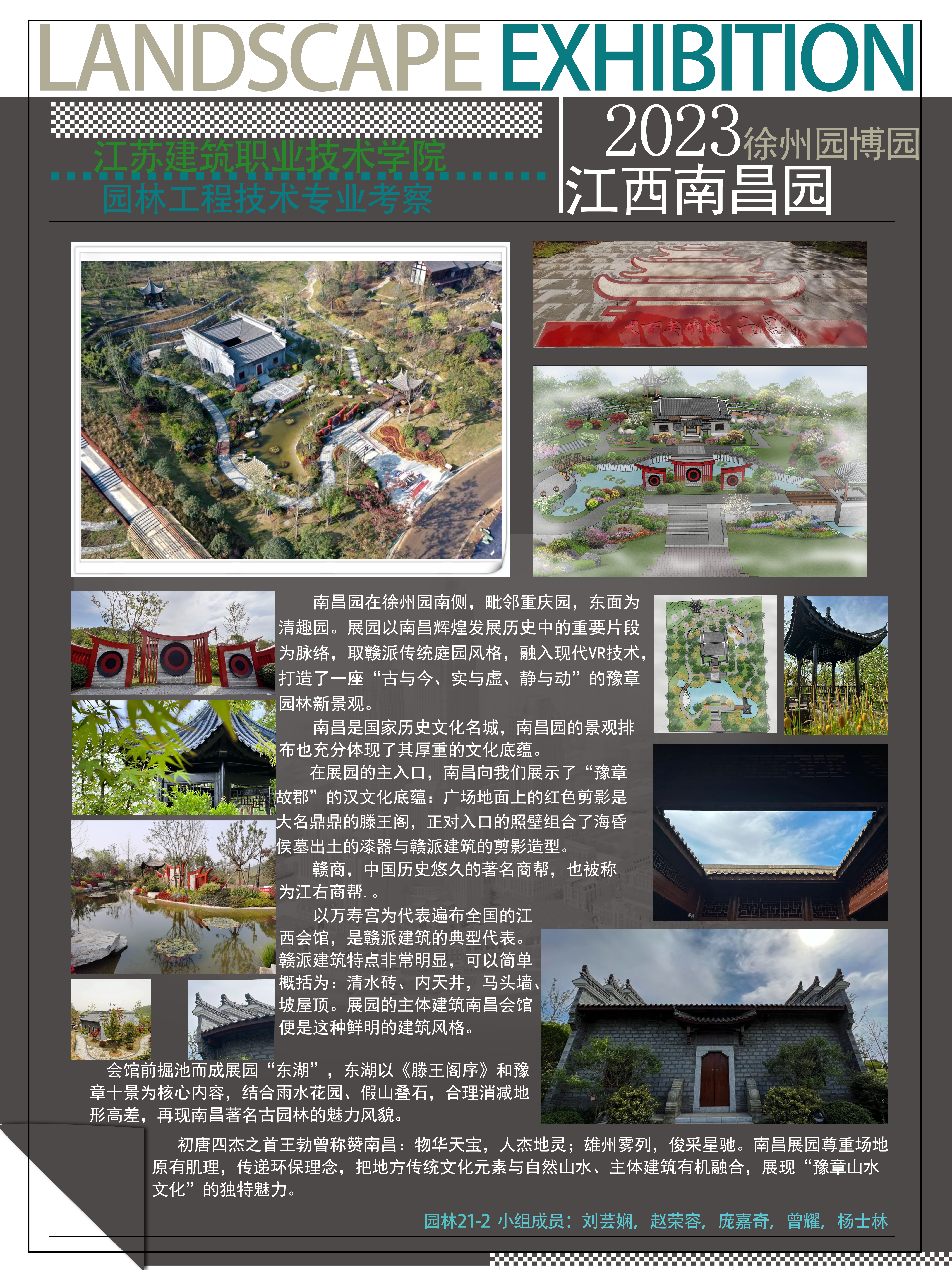 适逢第十三届中国国际园林博览会在徐州召开,专业考察期间,同学们沉浸式地实地考察了徐州园博园的整体规划,各展园的建筑、景观营造,植物识别及种植设计,同时,各小组选择一个展园进行了详细测绘,绘制完成了该展园的平面图、效果图,并对该展园进行了深入分析。
