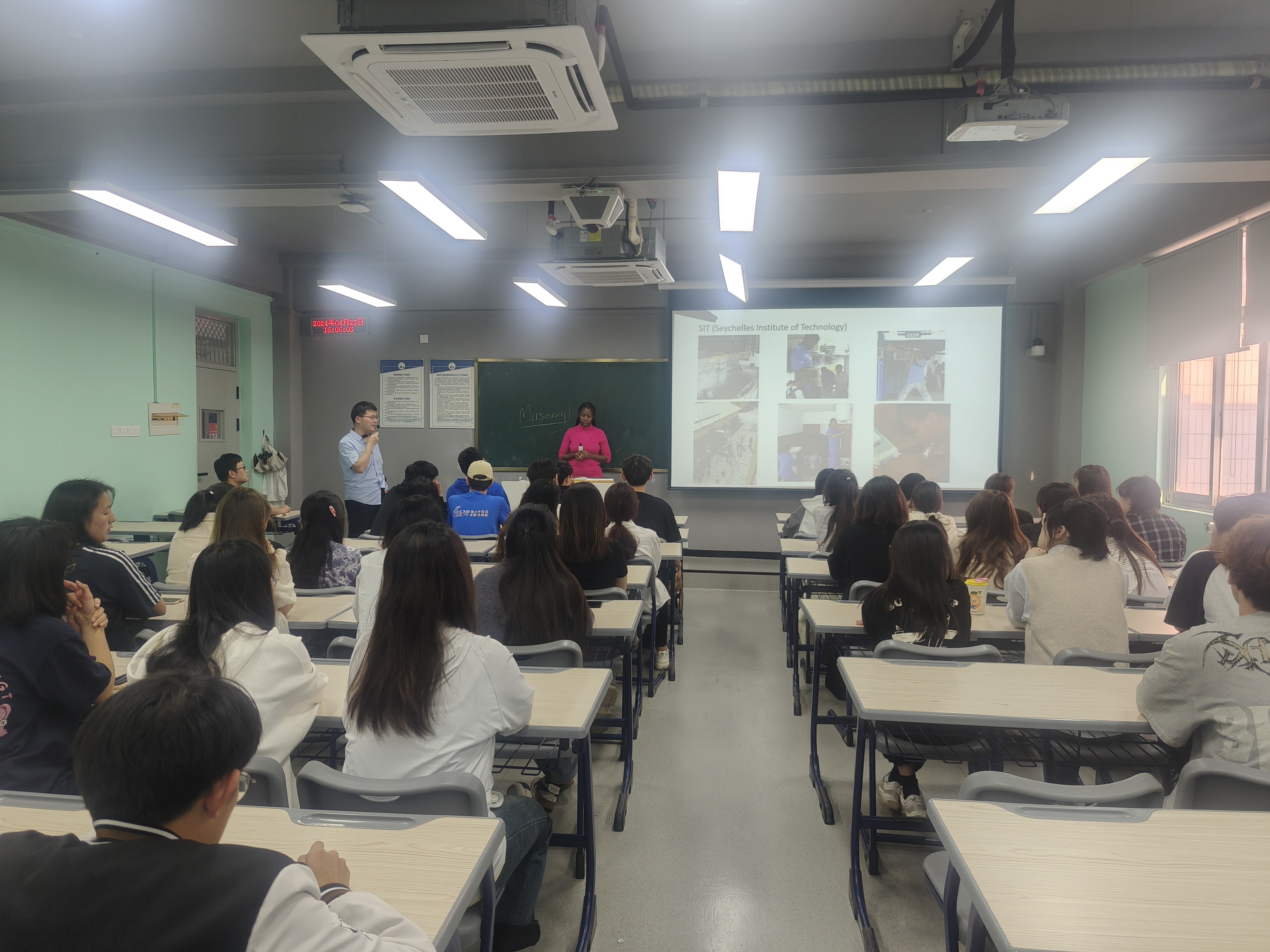 4月22日下午,365英国上市公司邀请来自塞舌尔来华培训教师Marie-Michelle Madeleine为365英国上市公司师生做《塞舌尔文化介绍》讲座。