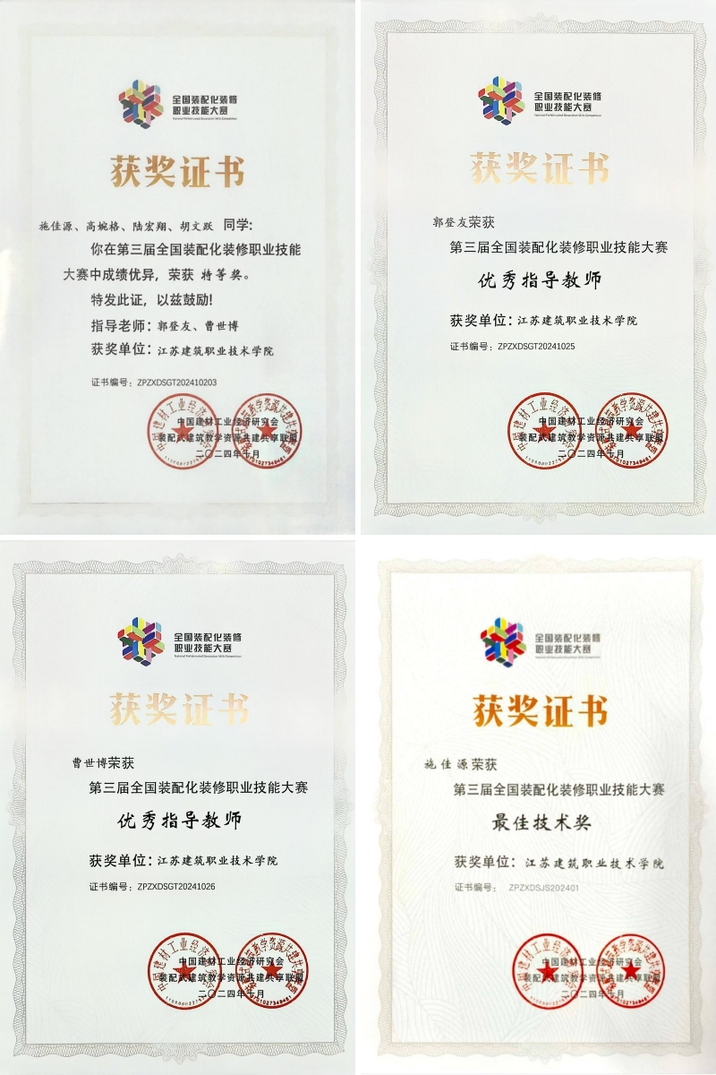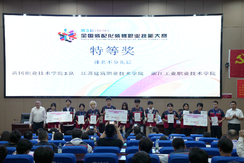 10月17日-18日,由中国建材工业经济研究会、全国装配化装修产教融合共同体主办,黄冈职业技术公司承办的全国第三届装配化装修职业技能大赛决赛在湖北黄冈举行。由公司365英国上市公司员工施佳源、高婉格、陆宏翔、胡文跃组成的参赛队伍获特等奖,同时施佳源荣获最佳技术奖,指导教师郭登友、曹世博获“优秀指导教师”称号。