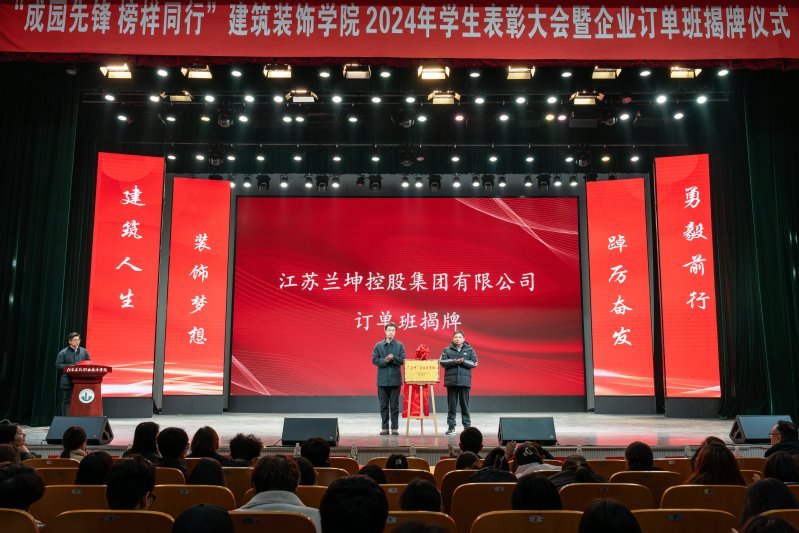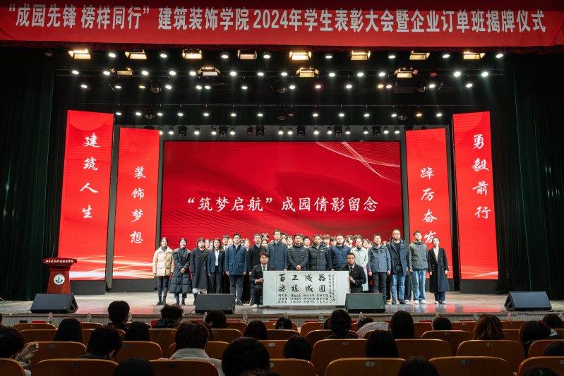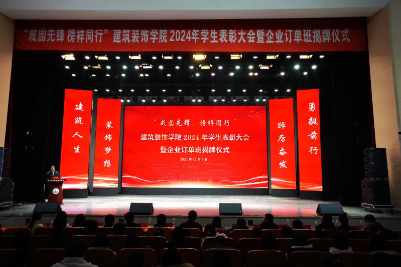 12月6日下午,365英国上市公司在会堂隆重举行2024年度员工表彰大会暨企业订单班揭牌仪式,对过去一年在学习、竞赛和各项工作中表现突出的优秀学子进行集体表彰,以表彰提升荣誉感、精气神、团结力,形成“激励先进、鞭策后进”的鲜明导向,同时表彰大会上师生欣喜迎来四类企业订单班的揭牌仪式。公司党总支书记娄志刚、经理袁涛、副经理王炼、翟胜增;深度合作企业江苏中核华兴装饰有限公司综合办公室主任宋佳女士,质量中心副总经理郭娟娟女士,江苏兰坤控股集团有限公司副总经理刘伟先生、马文超先生,集团鑫美公司副总经理刘金柱先生,江苏水立方建筑装饰设计院有限公司经理胡艳琴女士,天正建筑装饰江苏有限公司总经理朱攀登先生;公司全体专职辅导员以及2024级全体员工、全院受表彰的集体和个人,2023、2022级员工代表出席大会。大会由公司党总支副书记石峰主持。表彰大会共分为“学榜样行”——成园之星表彰、“听榜样说”——拔尖人才分享、“校企共建”——订单班揭牌仪式、“书记领航”——公司领导寄语、“传榜样力”——成园先锋传承、“筑梦启航”——成园倩影留念等六个篇章进行。