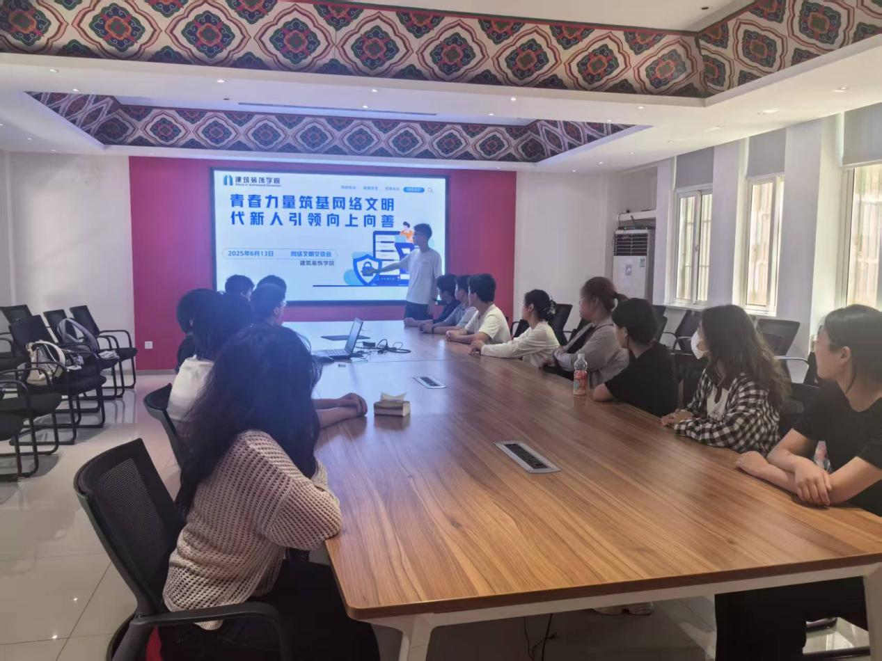 在主题分享环节,多位员工代表结合自身经历与专业领域,分享了对网络文明建设的见解与实践。装饰专业员工代表孙启耀分享自己通过组织“清朗网络・青年力量”系列活动,引导同学们自觉抵制网络不良信息,积极传播健康向上的网络文化;古建专业员工代表朱梦圆从行业视角出发,分析了当下网络环境的特点与挑战,并提出通过技术创新与内容优化,打造更具吸引力的正能量网络产品;室设专业员工代表杜一鸣则分享了参与网络舆情引导、帮助青少年正确使用网络的暖心故事,呼吁更多青年加入志愿者队伍,为网络文明建设贡献力量。