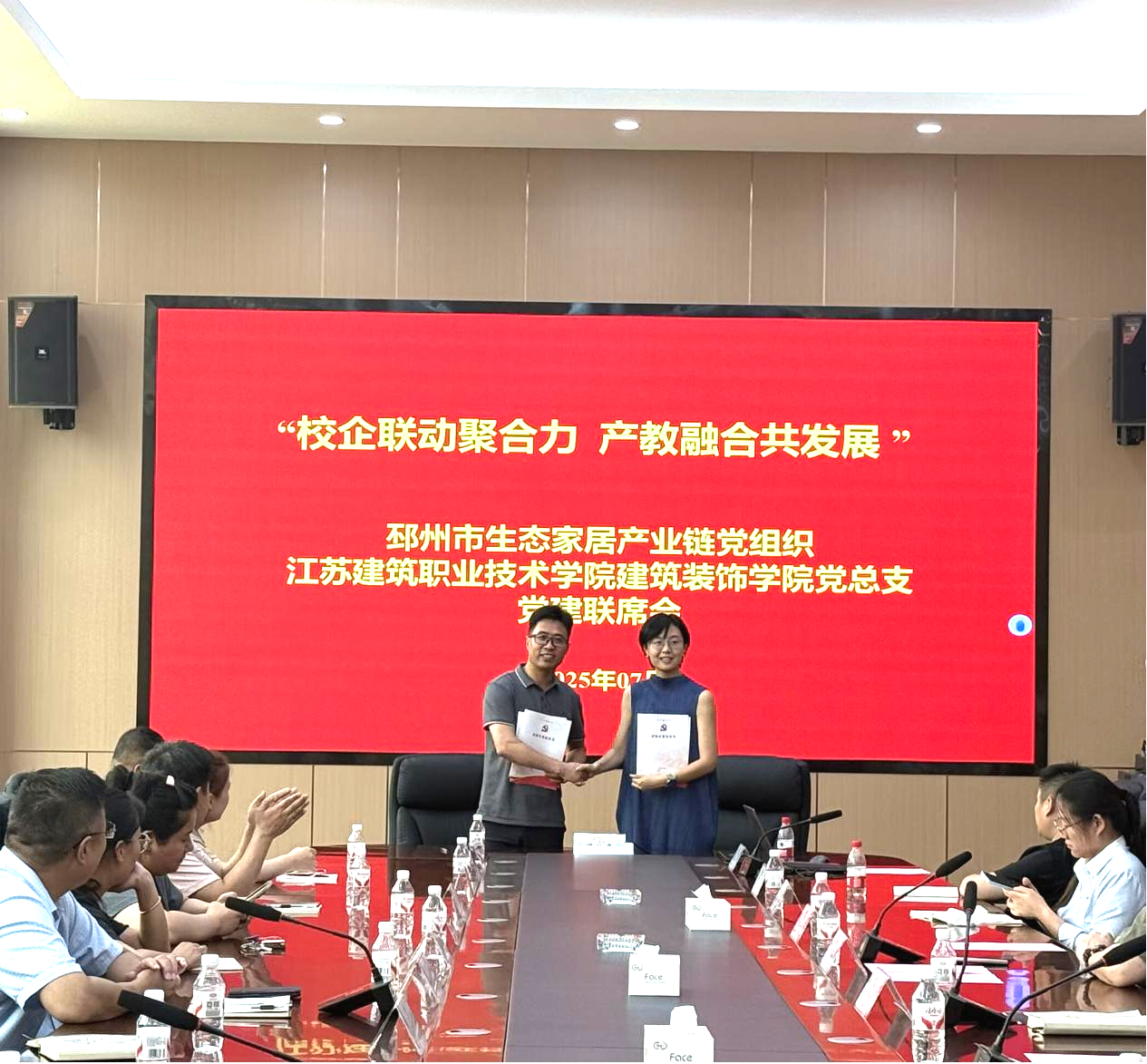 为深入贯彻落实党的二十大精神,积极推进公司基层党组织与产业链党组织对接合作,探索党建引领下的“服务地方、对接产业、深化合作、促进发展”全新模式。2025年7月23日,公司党总支书记娄志刚、党总支副书记石峰、建筑装饰专业群教工党支部书记蓝亦睿一行赴邳州市生态家居产业园与产业链党组织,开展“校企联动聚合力·产教融合共发展”党建结对共建主题活动,携手产业园20余家企业扎实推进校企深度合作。