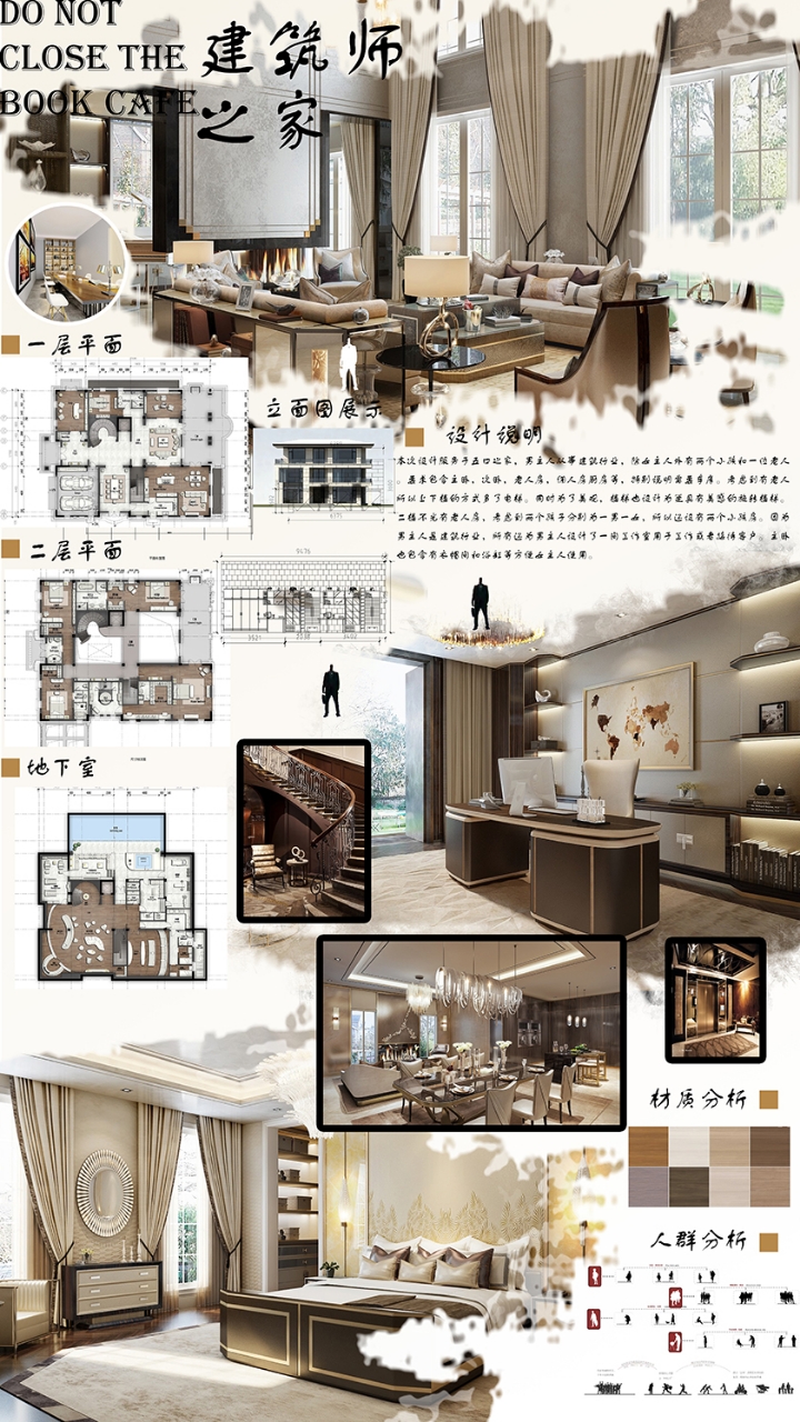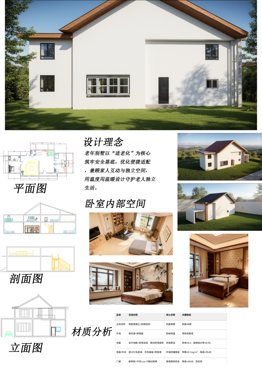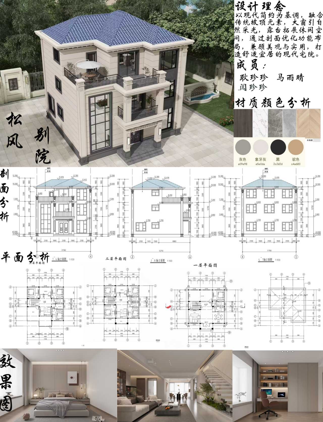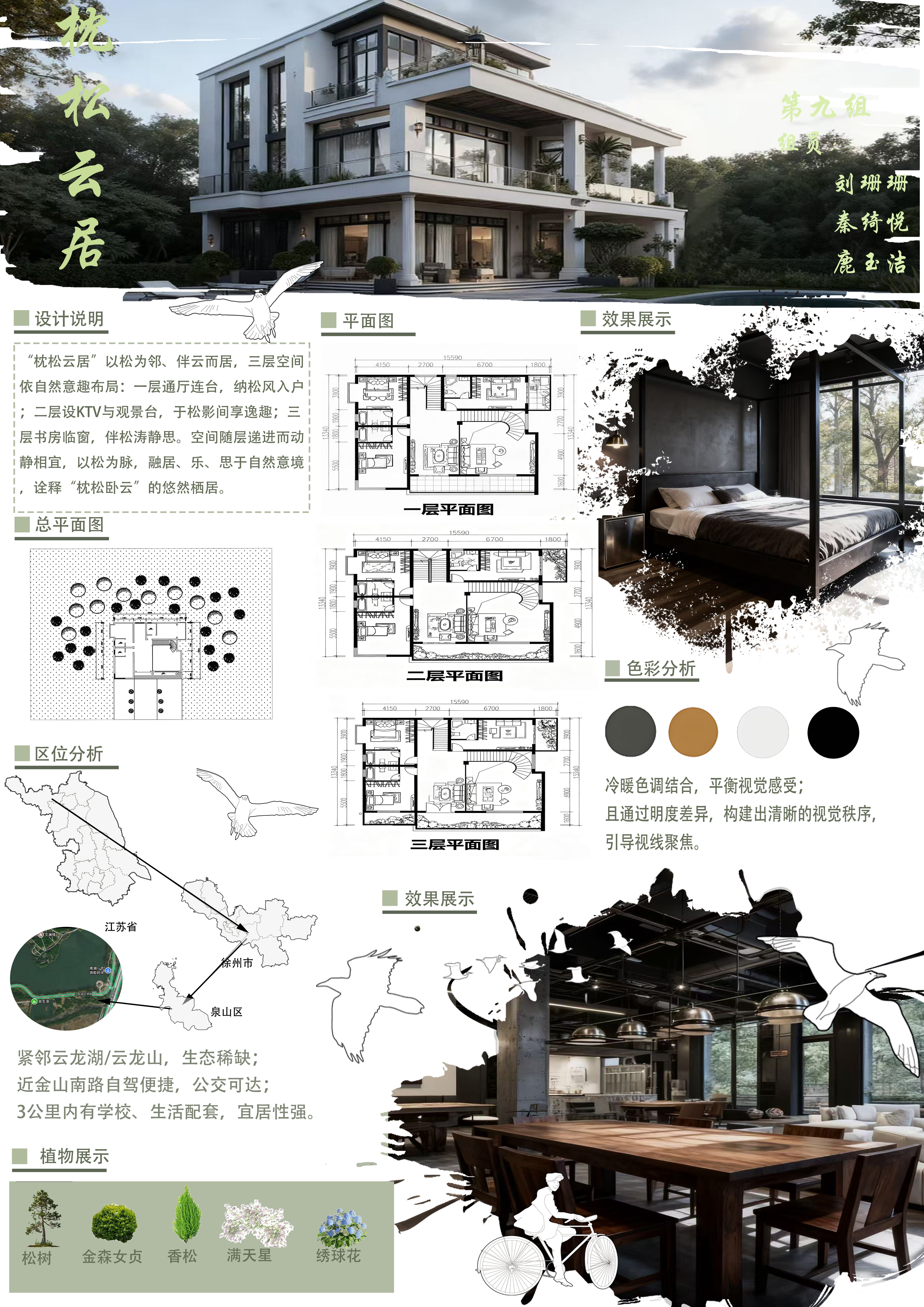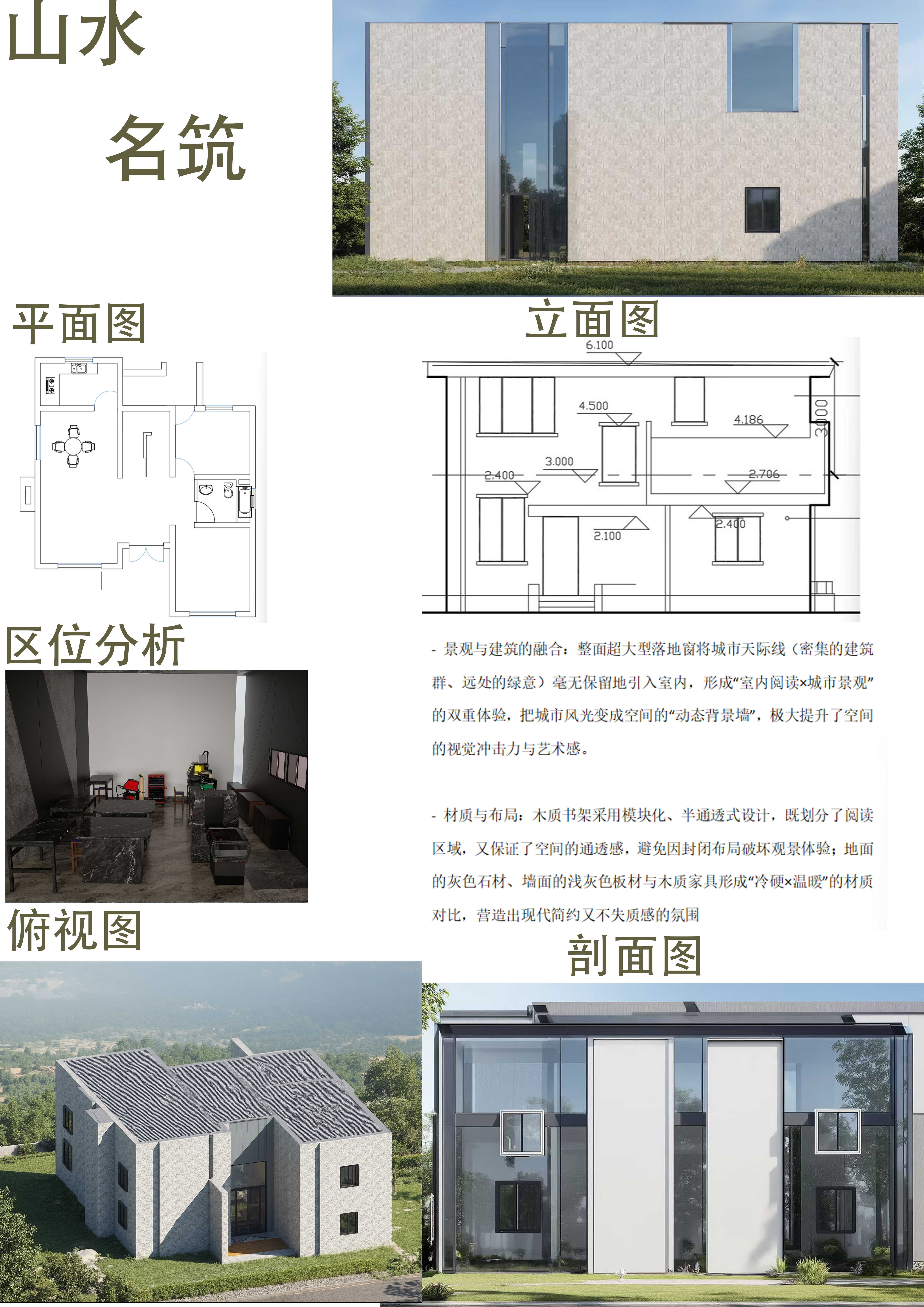 本次独立式小别墅设计是建设专业同学步入专业设计课程的第一个大作业。此次作业全年级有22组作品,从初始概念设计到AI辅助成图,各团队成员用不同的方式展示了180㎡的空间里“老-中-幼”三代人的生活模式。作品在注重功能的原则下关注形式的创新,同时更深入思考人与环境的共生关系,让建筑承载从‘功能容器’向‘情感载体’的功能转变。