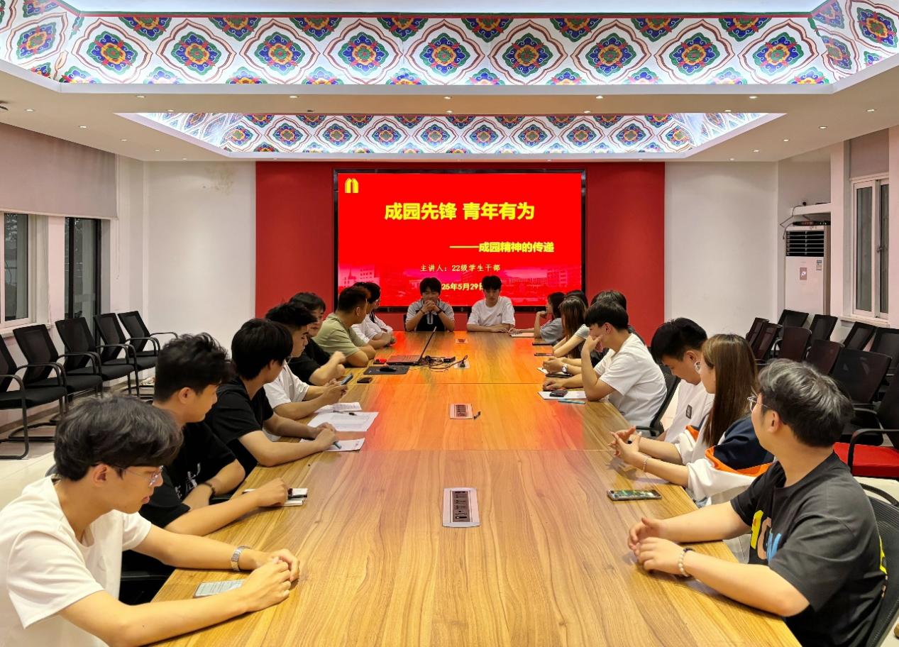 荣聪老师首先致辞,他对参训员工干部表示热烈欢迎,宣读了员工干部培训方案及青马工程培养计划,提出员工干部是公司与员工之间的桥梁纽带,肩负着服务同学、助力公司发展的重要使命。并以《成园先锋,青年有为》为题做专题讲座。会议强调,员工干部作为公司员工工作的骨干力量,不仅要具备扎实的专业知识,更要传承精益求精的工匠精神与“百工成器,梁栋成园”的成园文化。荣聪老师以行业中“榫卯结构”为例,类比员工干部团队协作的重要性,号召大家以匠心对待工作,以文化凝聚力量。