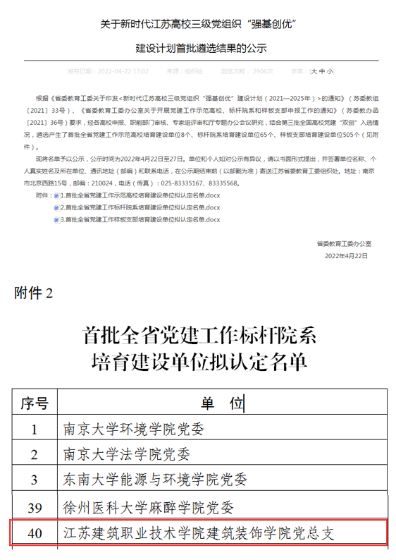 近日,省教育厅遴选产生了首批全省党建工作示范高校培育建设单位8个、标杆院系培育建设单位65个、样板支部培育建设单位505个。公司党总支入选首批全省党建工作标杆院系培育建设单位。
