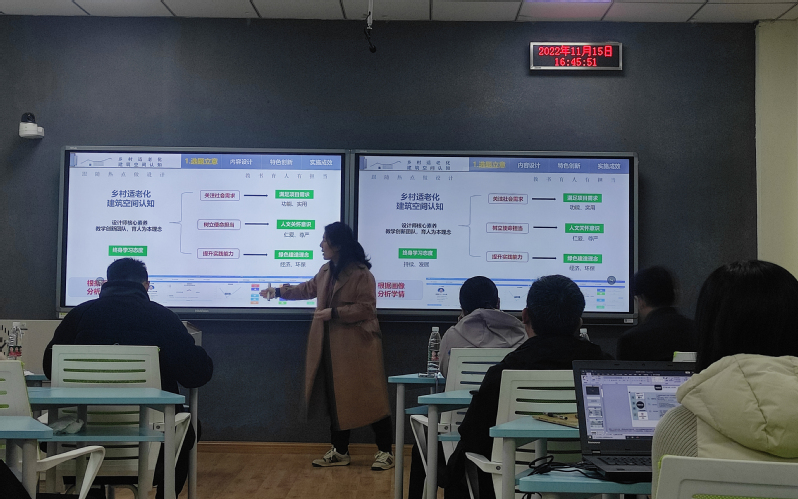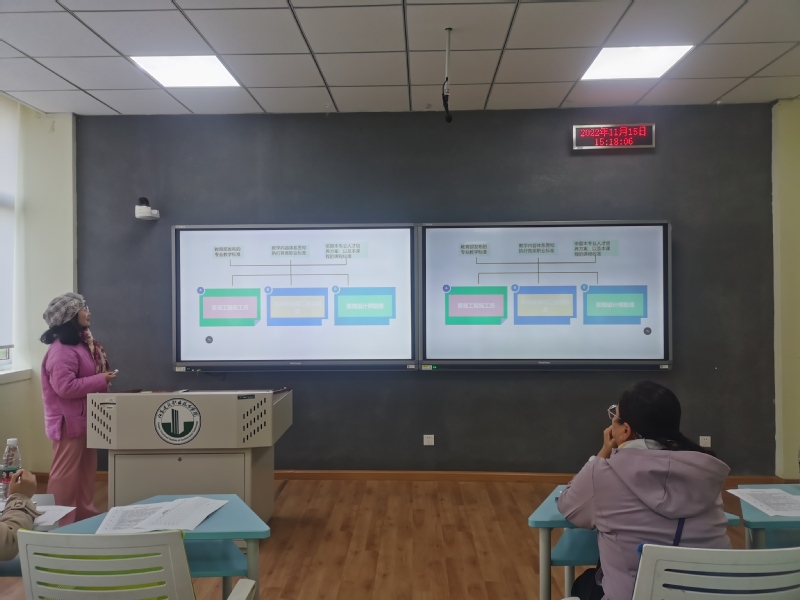 竞赛分两个阶段进行,第一阶段各专业围绕《教学能力比赛评分指标》、《关于2023年校教学能力比赛暨省赛项目遴选的通知》等形式评比,推荐专业获奖教师(团队)名单。第二阶段,公司于11月15日邀请教务处分管教学能力大赛的沈文洁主任,历年获省级及国家级奖项的具有丰富经验的专家教师马克思主义公司张文远教授、公共基础公司张弘副教授、艺术设计公司张杰副教授、建筑智能公司高喜玲副教授等专家组成评审小组。参赛教师思路清晰,严谨规范,系统设计、有机融入课程思政、劳动精神等育人新要求,体现职业性,反映时代性。评委对参赛教师给予了充分的肯定,并做了精彩点评。